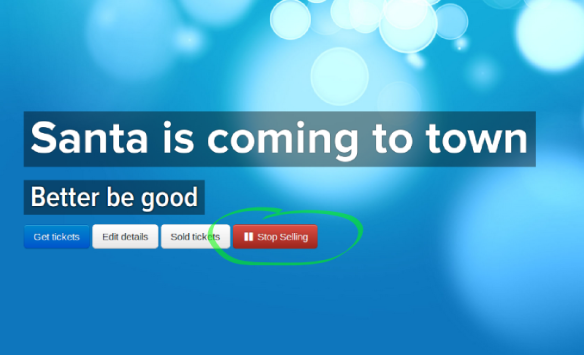 See that new button? Hard to miss, all red and everything, right? This button will pause your ticket sales for all performances of this event, effectively removing the “get your tickets” button and canceling any purchase process prior to the payment step. If you have any kind of temporary situation that must be dealt with, you can always use this button to pause and (later resume) sales for this event.