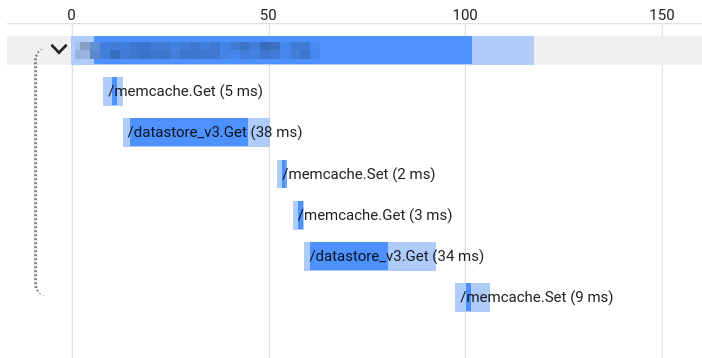 Our current application is waiting 80-90% of the time for either Datastore or Memcache. The following screenshot is a sample request where our web server was waiting 90ms (out of 120ms) to deliver a response.